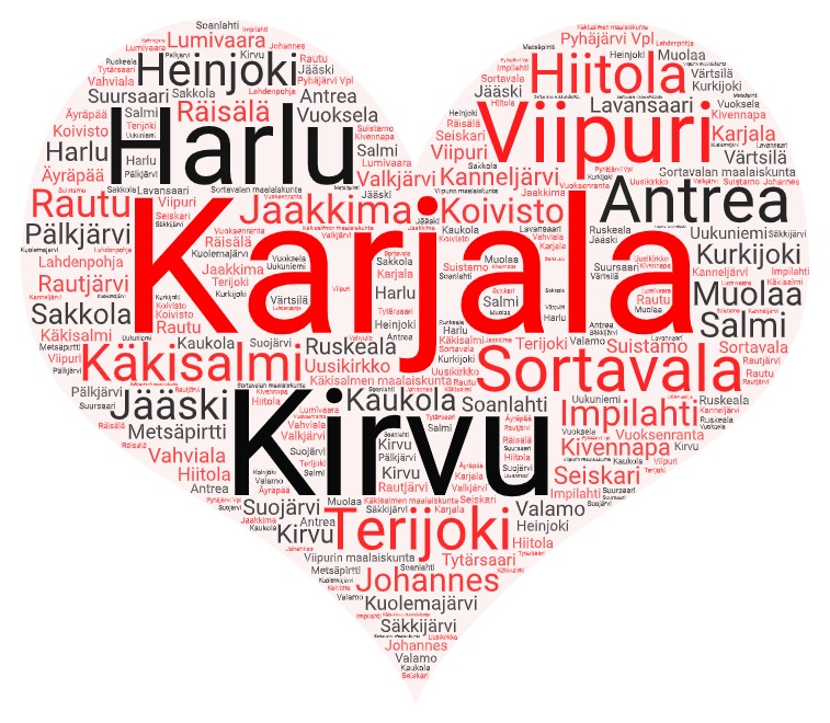 Äitini joutui lähtemään 7-vuotiaana evakkomatkalle Harlusta, ja isän puolelta juureni ovat Kainuussa. Itäisten juuriseutujeni lisäksi olen aidosti ylpeä nykyisestä asuinympäristöstäni, josta löytyy monia siirtokarjalaisia kiinnostavia retkikohteita. Tervetuloa kylään Keski-Uudellemaalle!